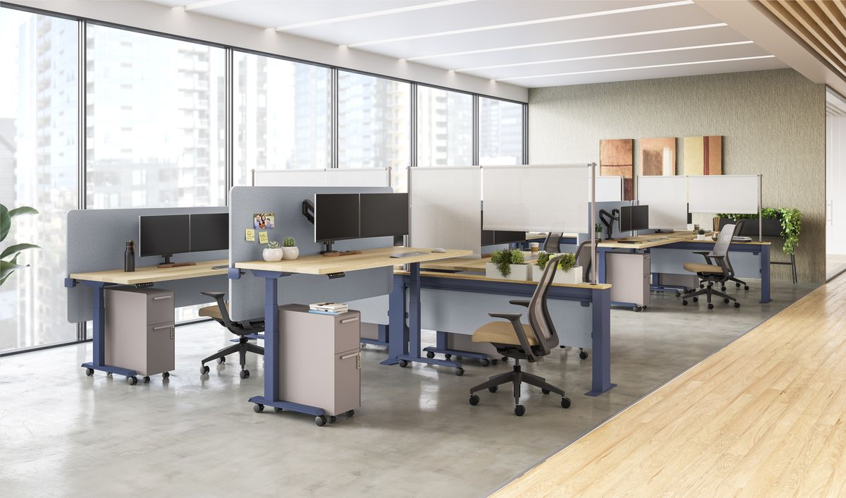 Para uso ideal, combine sua mesa em pé com um tapete anti-fadiga e ajuste a altura para que seus cotovelos descansem em um ângulo de 90 graus.