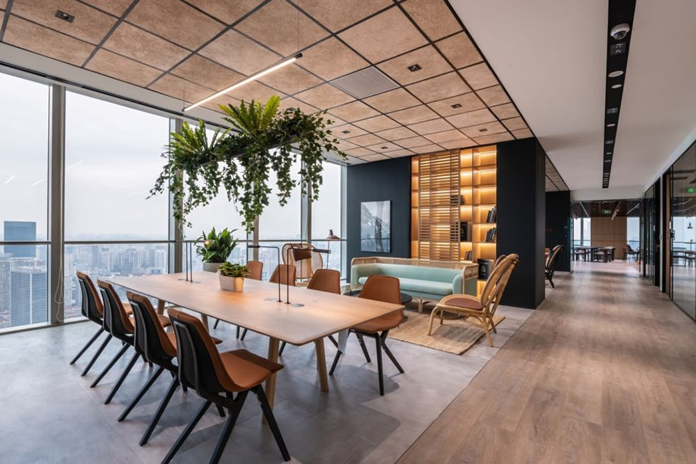 - ** Paletas de material quente **: acabamentos naturais de madeira, tecidos macios e esquemas de cores terrosos dominam os brancos estéreis e os cinzas dos escritórios tradicionais. Essas opções criam calor visual e variedade tátil que fazem com que os espaços pareçam mais personalizados e menos corporativos.