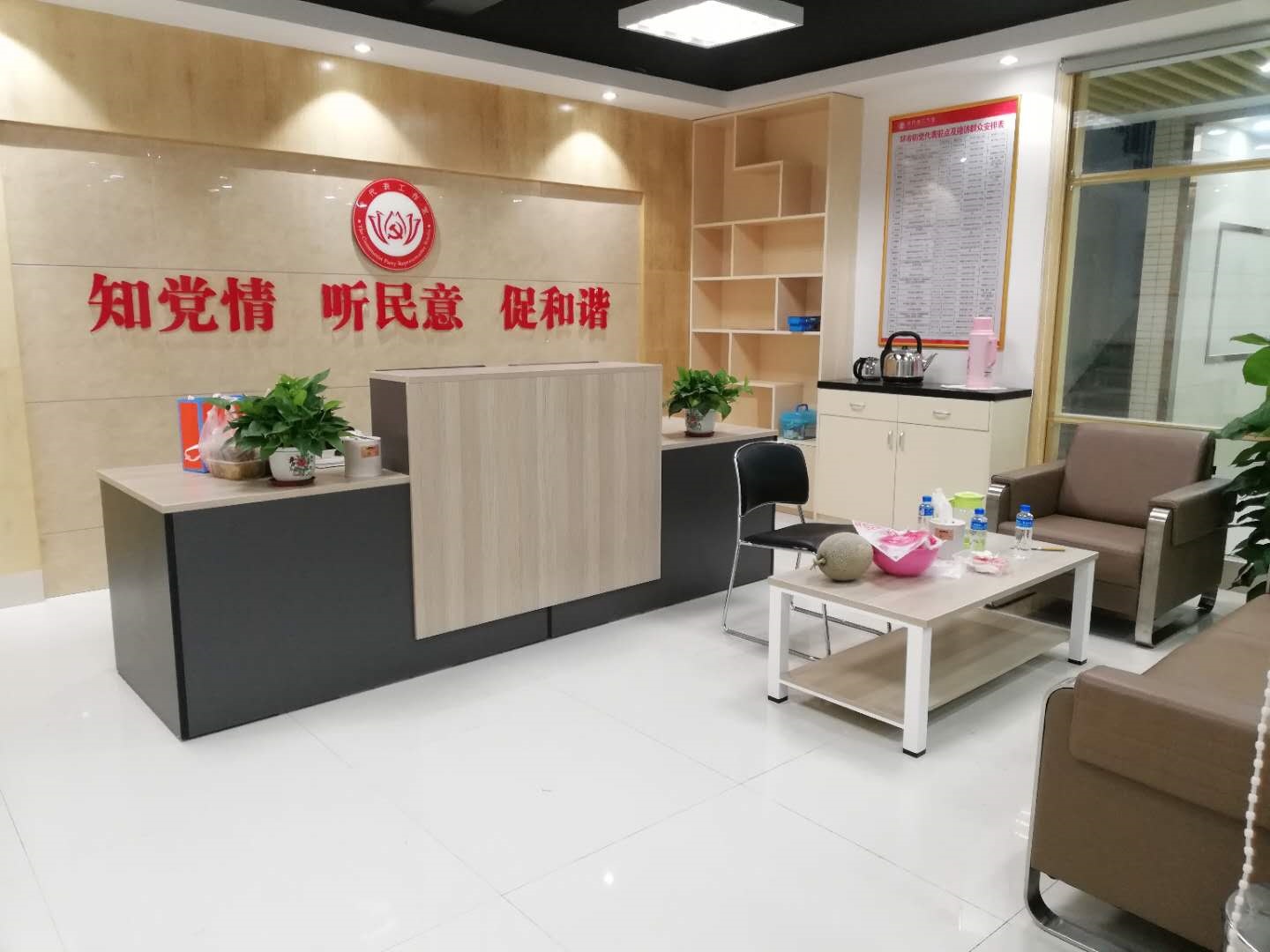 Na entrada, nossa recepção elegante e profissional serve como centro de nosso centro de interação comunitária. Foi concebido para criar uma impressão duradoura, com um equilíbrio entre estilo e praticidade que reflete a natureza calorosa e acolhedora do nosso centro. Atrás do balcão, nossa equipe simpática e dedicada está pronta para ajudar com dúvidas, fornecer informações e garantir que cada visitante se sinta valorizado e apreciado.