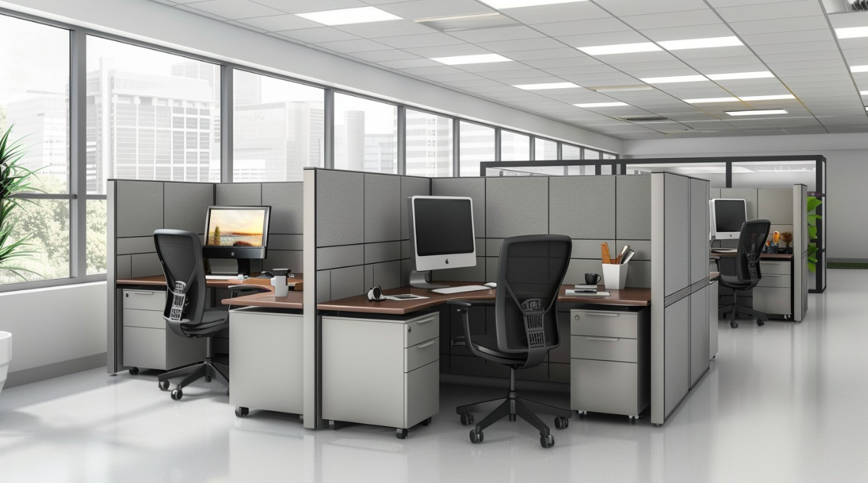 Determine o número e o tipo de mesas necessárias com base no design do seu escritório e nos fluxos de trabalho dos funcionários.