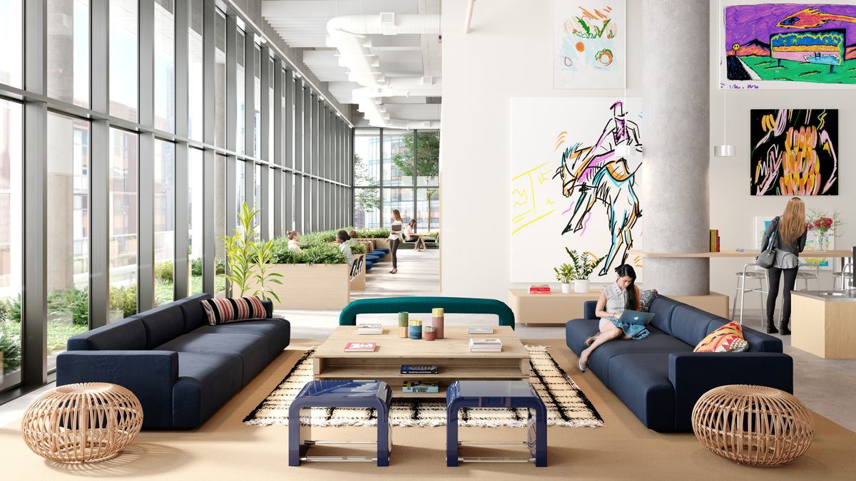 - ** Pods particulares e assentos de lounge semi-fechados ** para o trabalho focado.