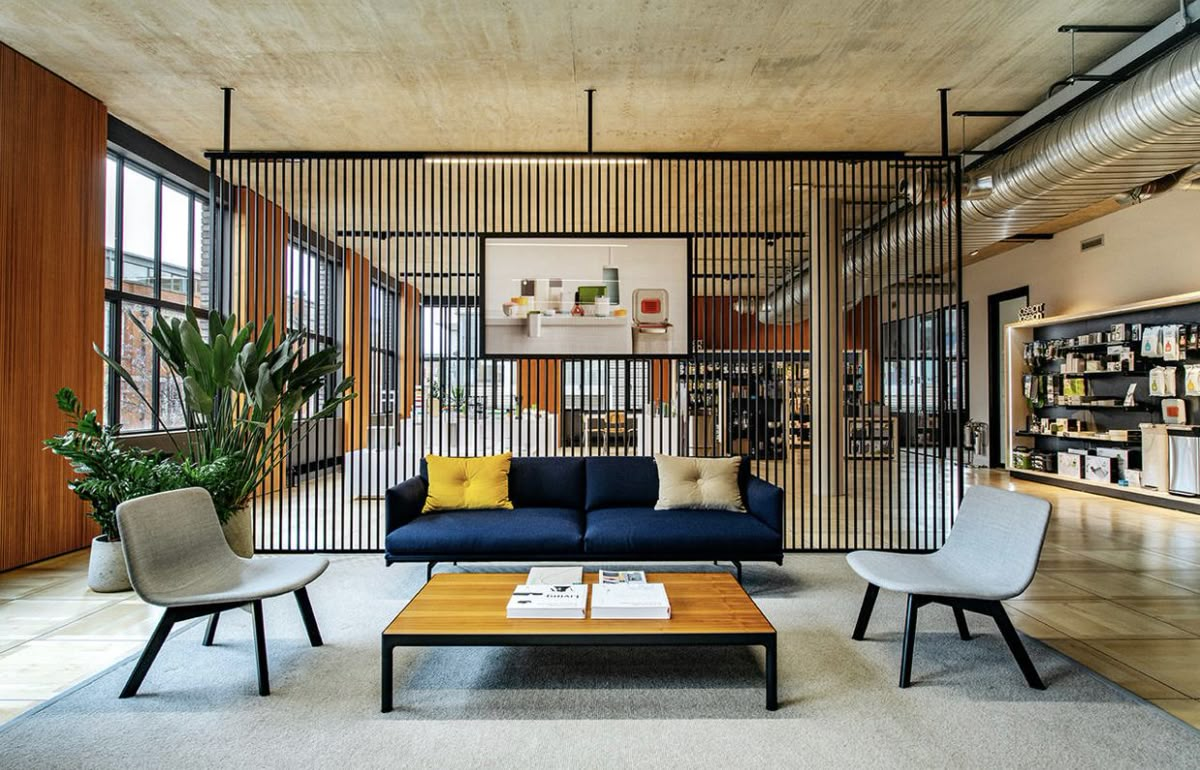 - ** Sofás de salão de escritório de zagueiro ** que criam uma sensação de reclusão.